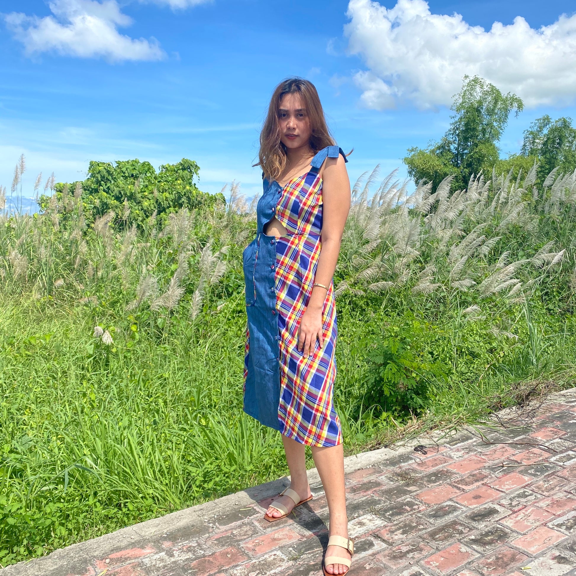 Hello, Prashana dresses the fabric that never gets out of style, Vida Hayes designed a simple asymmetrical cut yet perfect combination of plaid and upcycled shades of blue threads. Weavers from the Negros Island Philippines, loom by hand using their unique technique in plaid and plain fabric. Like this inspiration, Prashana cool as ever.